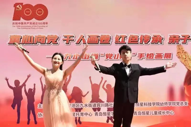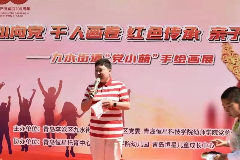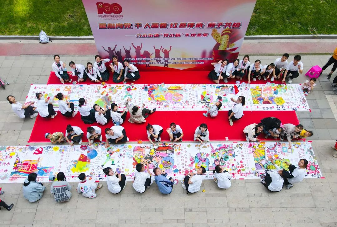 为迎接建党一百周年、传承红色文化,同时促进大学生成长成才。青岛恒星科技学院教育学院党支部于2021年5月30日在九水街道如园小区开展“童心向党,千人画卷,红色传承,亲子共绘”的活动。教育学院党总书记陈海艳书记、教育学院实训党支部书记王清书记带领恒星幼儿园教职工、教育学院学生党支部发展党员和学院学生志愿者参加了此次活动。