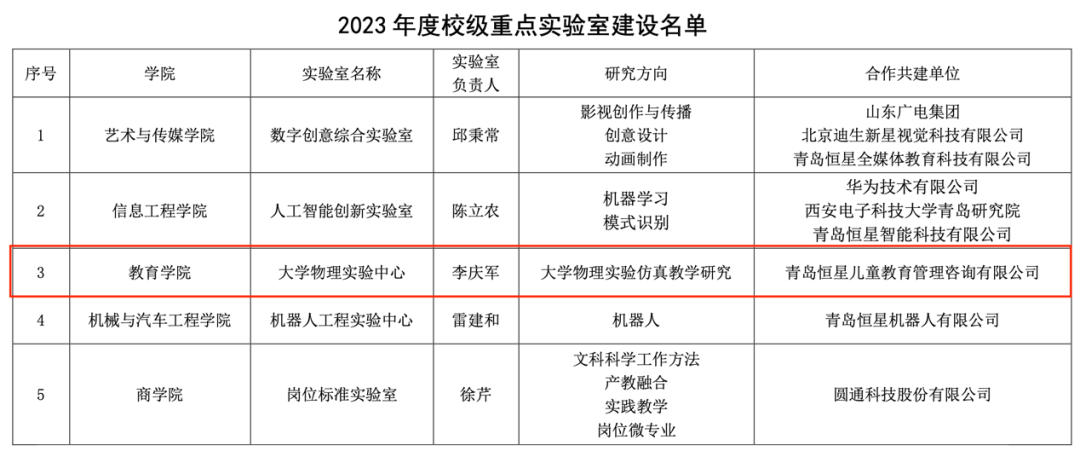 近日,我院学前教育专业成功获批校级本科一流专业建设点,大学物理实验中心成功获批校级重点实验室建设点,依托教育学院组建的托幼一体化创新产业学院成功获批现代产业学院立项建设,与北京菁英堡教育科技有限公司、海南国培创新教育研究院、青岛恒星儿童教育管理咨询有限公司(恒星托育中心)、青岛恒星学院幼儿园共建合作。三项立项获批,标志着我院向高质量发展又迈进一步!
