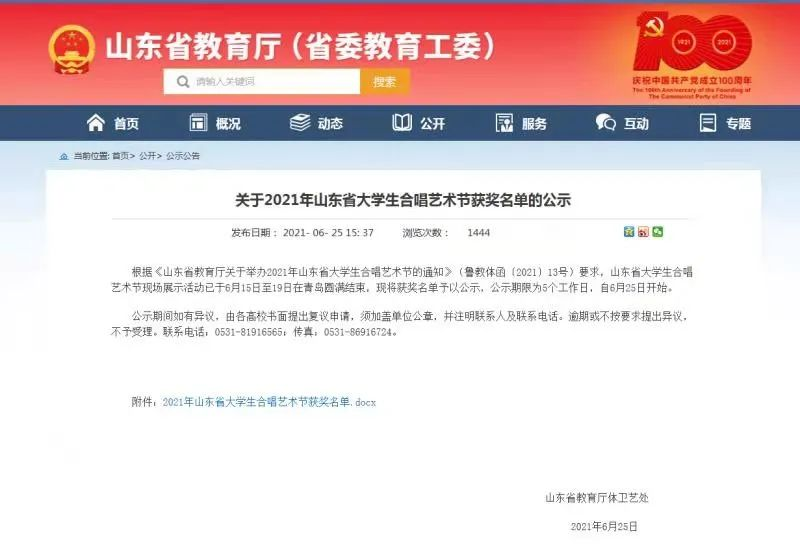 6月25日,山东省教育厅对2021年山东省大学生合唱艺术节获奖名单进行公示,青岛恒星科技学院教育学院合唱团荣获三等奖。