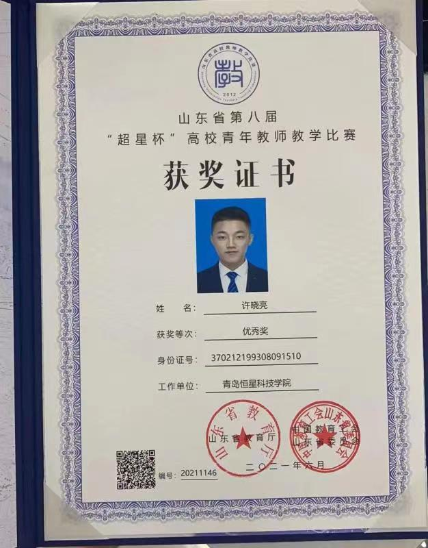教育学院许晓亮老师荣获山东省第八届“超星杯”优秀奖