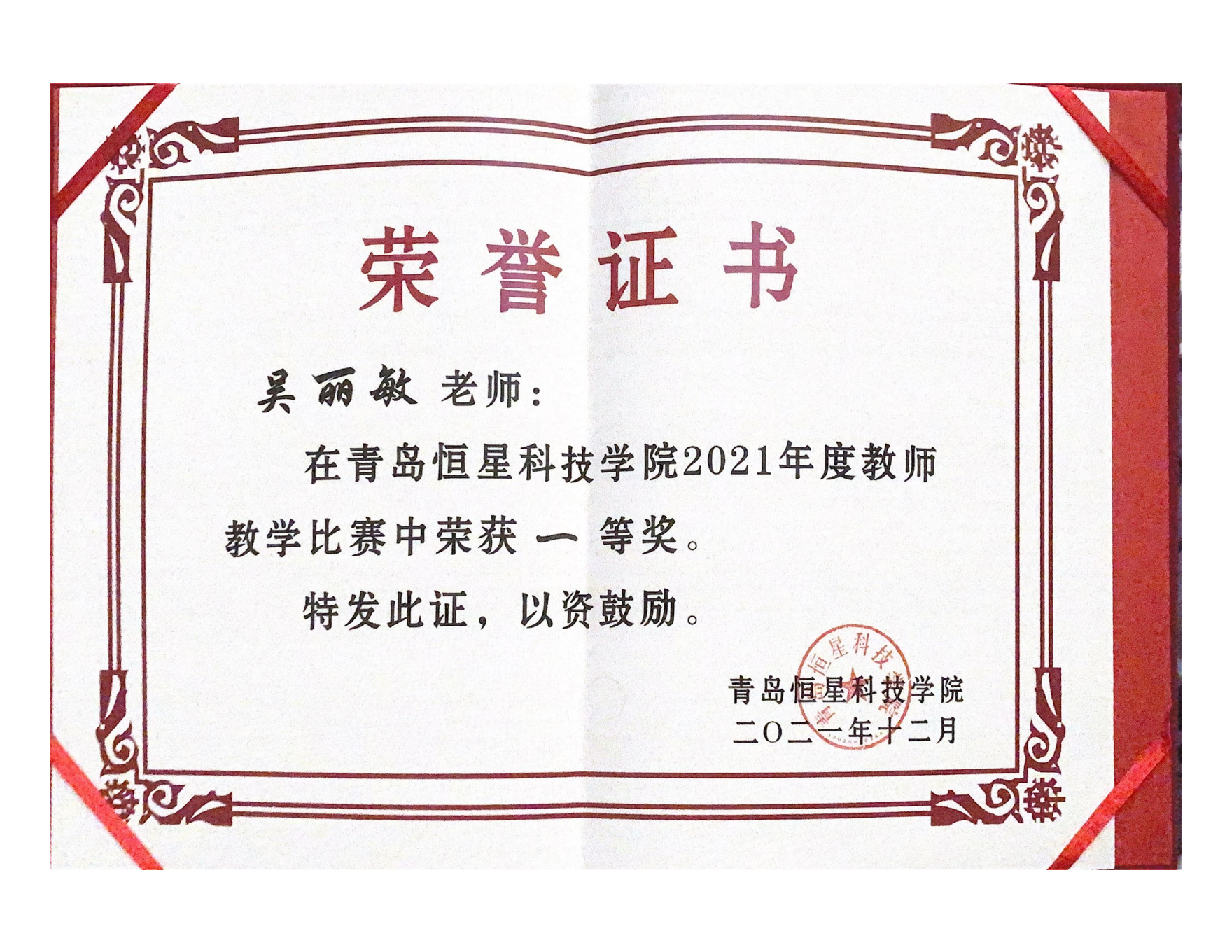 教育学院吴丽敏老师2021年度教师教学比赛中荣获一等奖