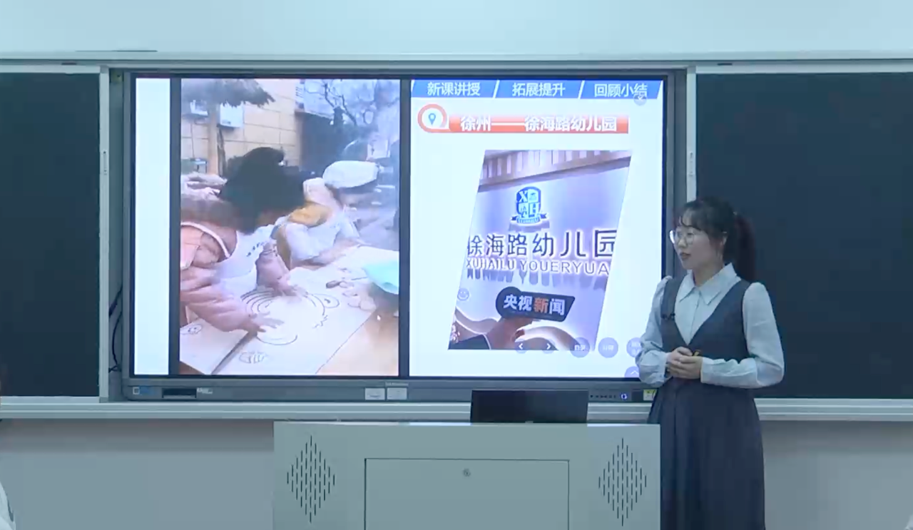 在课程设计上,吴丽敏老师始终思考:如何让理论落地,让课堂既专业又有趣?学生的反馈给了她重要启发。例如,在《幼儿园主题活动设计》单元中,学生常困惑于“如何平衡预设与生成”;在《游戏与课程融合》模块中,他们对“如何观察并支持幼儿的游戏学习”充满兴趣。这些真实问题成为了课堂设计的起点。尝试搭建“理论—案例—实践”三维支架,用思维导图厘清核心概念,精选幼儿园真实活动视频、幼儿游戏片段,引导学生分析讨论,并设计模拟情境任务,带领学生去到一线幼儿园,验证学习成果并让学习成果可视化。此外,特别注重“问题链”设计,例如在讲解“幼儿园课程评价”时,通过“评什么?—怎么评?—谁来评?”的递进提问,引导学生层层深入,培养批判性思维。