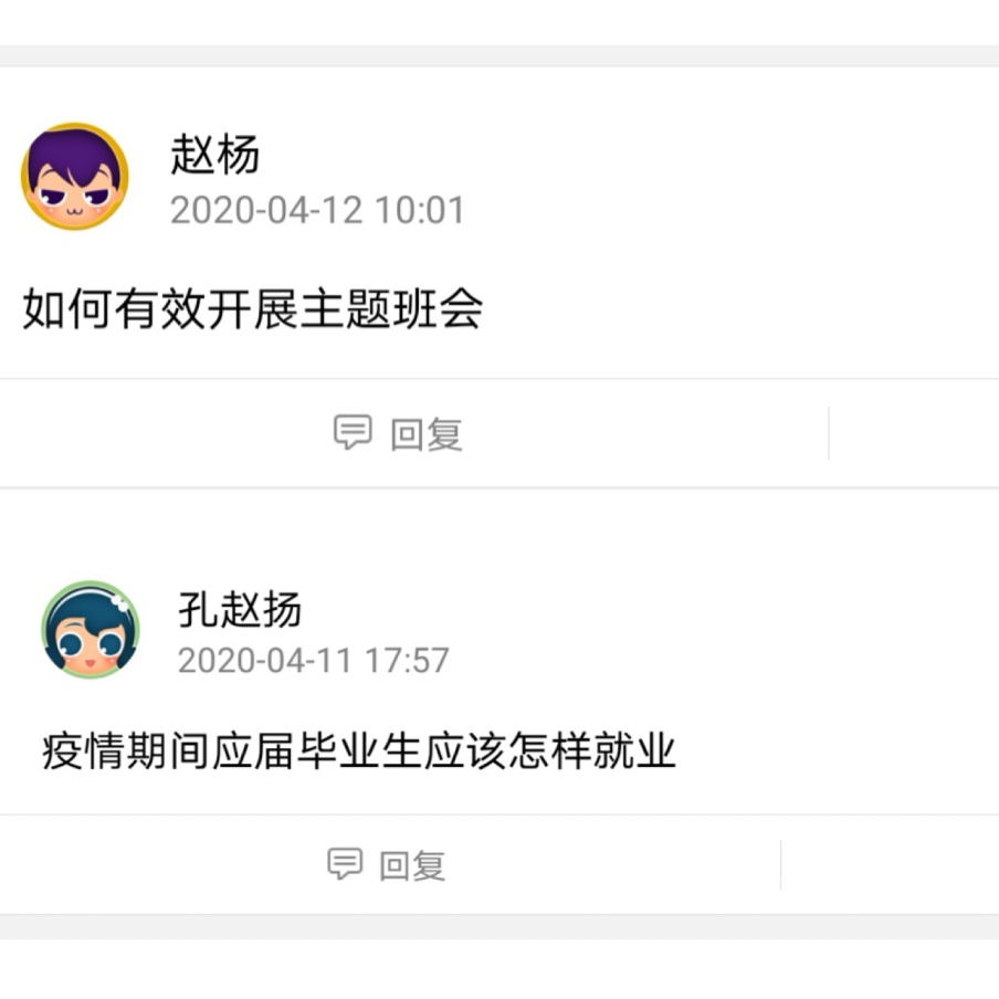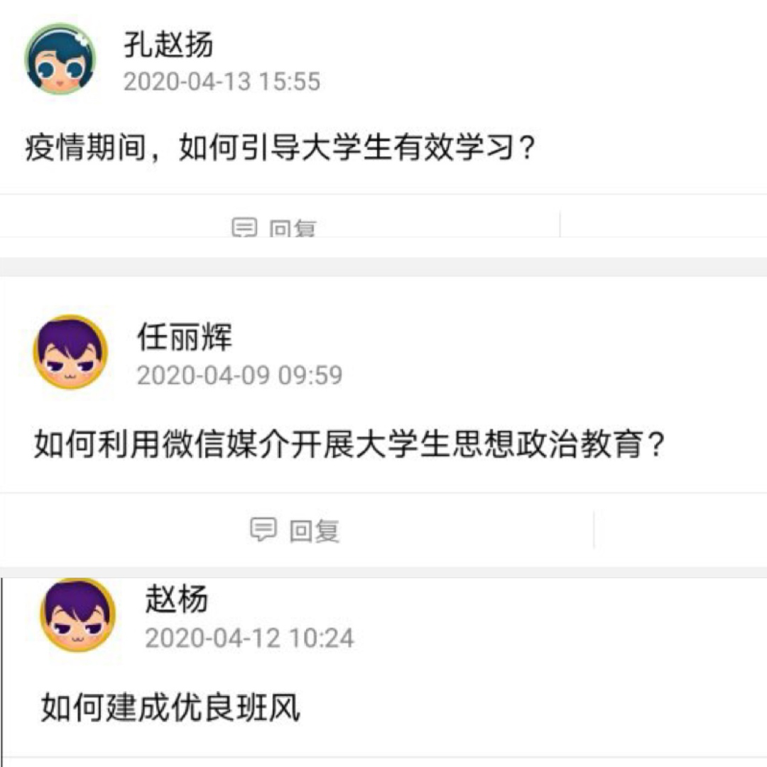 本次全国高校辅导员网络培训中,辅导员深刻认识疫情防控背景下加强思想政治教育工作的重要性、紧迫性,特别珍惜此次学习机会,通过培训掌握特殊形式下大学生思想特点和行为特征,更好地引导大学生理性认识和应对疫情带来的学习、生活和就业影响,增强学生爱党爱国意识和情感。不断提高辅导员做好新时代高校思想政治工作的能力素质,将立德树人的根本任务落实落地。
