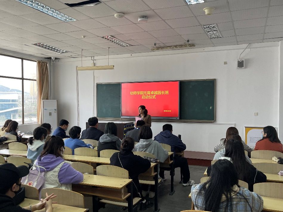 赵新艳副处长在讲话中对托育卓越园长班的顺利开班表示热烈祝贺,向择优入选卓越班的同学表示热烈的欢迎,对于学社导师的个人魅力和卓越班的师资水平给予充分肯定,相信学前教育专业人才培养质量将跃上新台阶,为社会输送卓越的幼教师资。