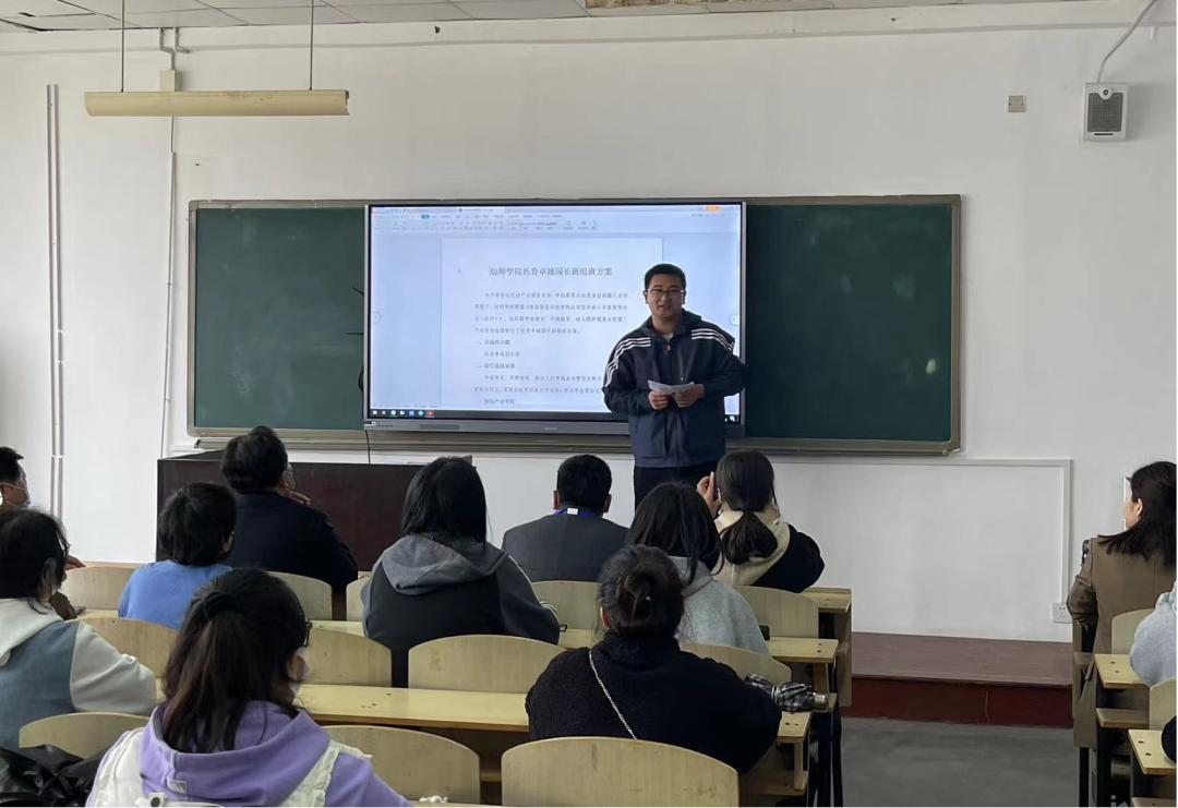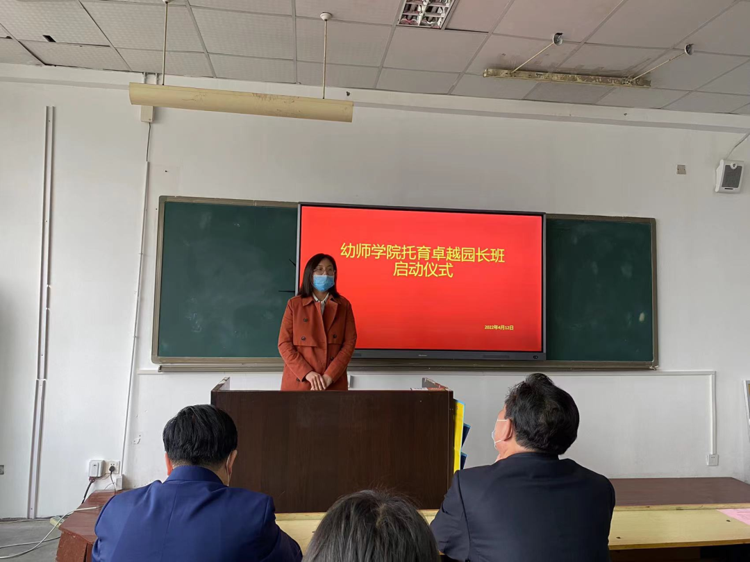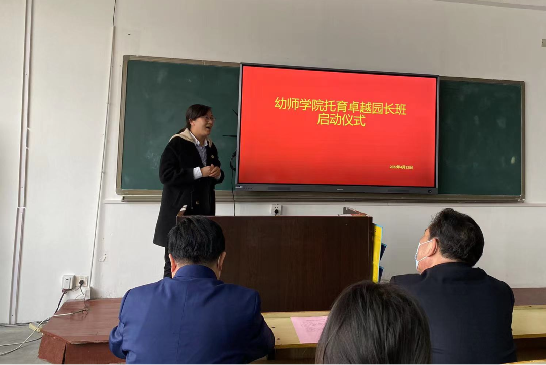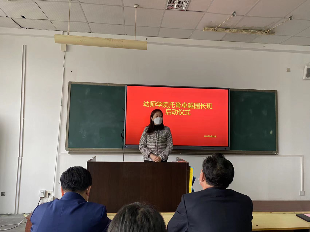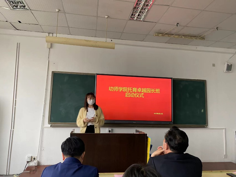 会议伊始,王梓楠院长介绍了“托育卓越园长班”诞生的由来以及具体人才培养方案。他指出,学院将以卓越班为载体,引入优质教学资源,搭建培优赋能的发展平台,为学生提升专业能力保驾护航。并从卓越人才培养体系、初中高级不同层次的小型岗位理论实践课程考核细则等方面重点突出了卓越班学社制动态管理、国内外名师名校、托育行业大赛平台、高端就业和创业平台等特色优势,希望大家在加入卓越班后,能够潜心求知、静心求学、用心实践,追求卓越。