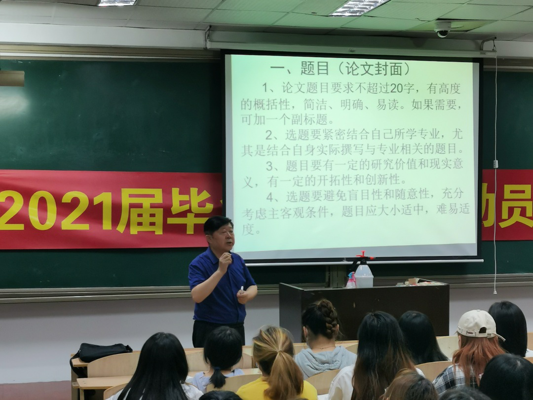 为有效落实毕业论文的写作工作,确保论文的规范性,提高论文整体质量,促进毕业生的毕业论文设计进程更加快捷高效。青岛恒星科技学院教育学院于9月27日在A4-708召开了2020届毕业论文撰写动员大会。本次大会的主讲人是青岛恒星科技学院教育学院院长王冰教授,王教授为大家提供了正确的写作方向和清晰明了的写作建议。