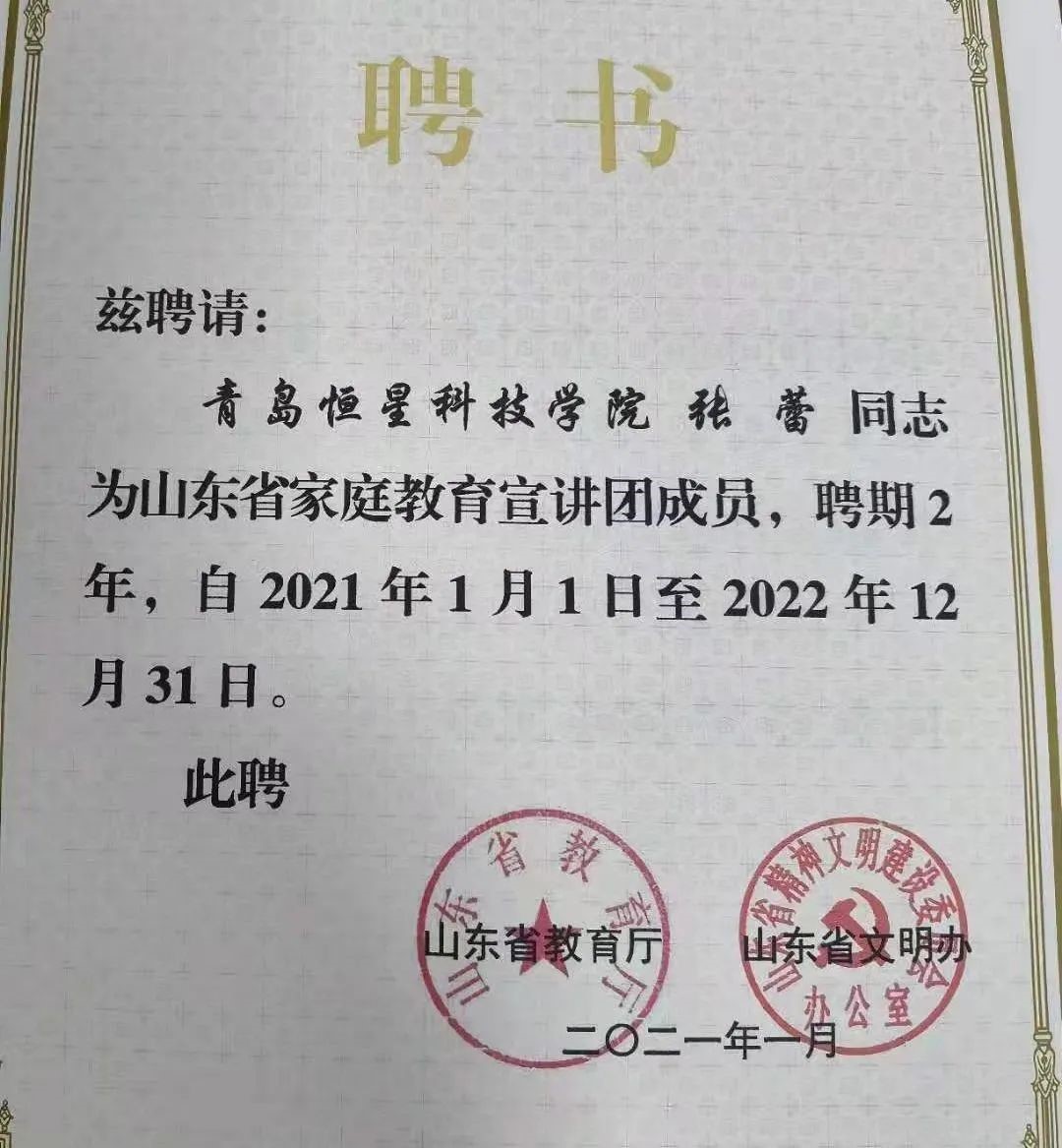 我院张蕾教授成功被家庭教育宣讲团聘请为宣讲专家,王梓楠老师、方臻老师成为入选为服务总队志愿者。