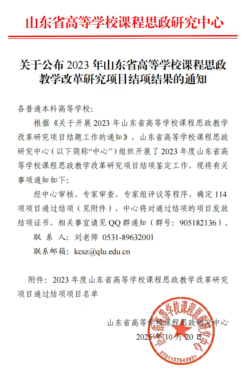 近日,我校专咨委副校级专家王冰教授主持的2023年山东省高等学校课程思政教学改革研究项目《创造性转化创新性发展:学前教育专业幼儿园中华文化教育课程论重构研究》,经山东省高等学校课程思政研究中心严格评审,顺利通过验收,成功结项!