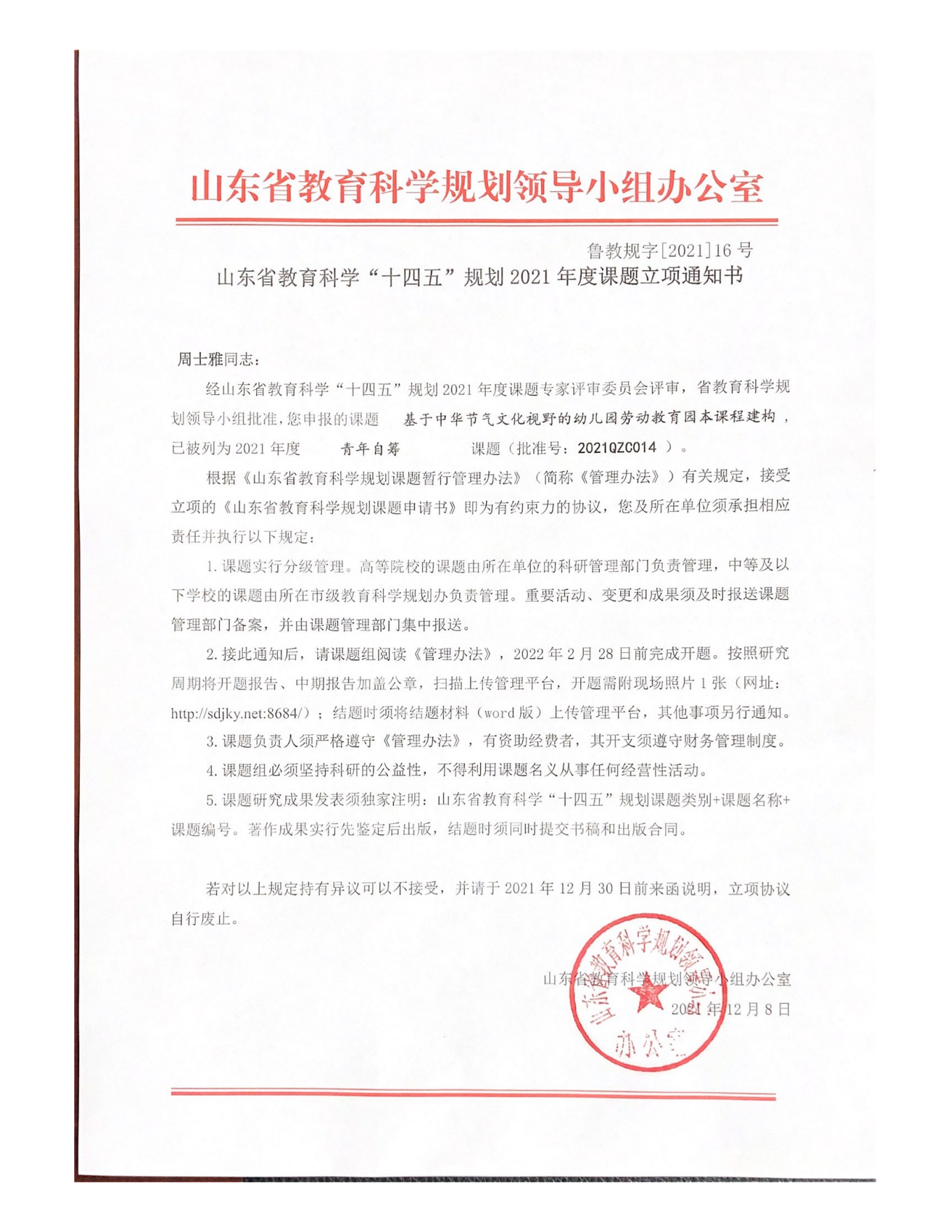 山东省教育科学“十四五”规划2021年度课 题拟立项名单公示