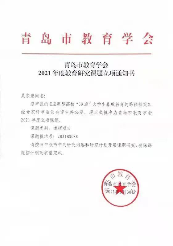 在2021年度青岛市教育学会教育研究课题申报工作中,教育学院成果斐然,成功立项三项2021年度青岛市教育学会教育研究课题。