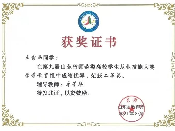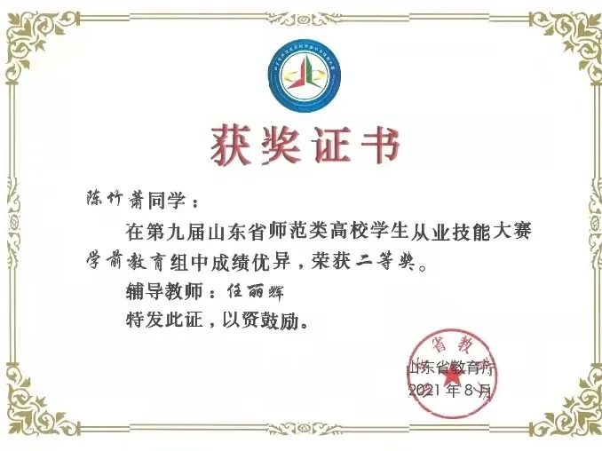 学院学生积极参与国家级、省级、市级等技能大赛,与各高校成员切磋较量,其中在第九届山东省师范类高校学生从业技能大赛我院两位优秀毕业生取得了省级二等奖的优异成绩。