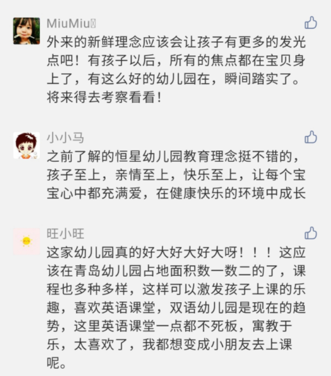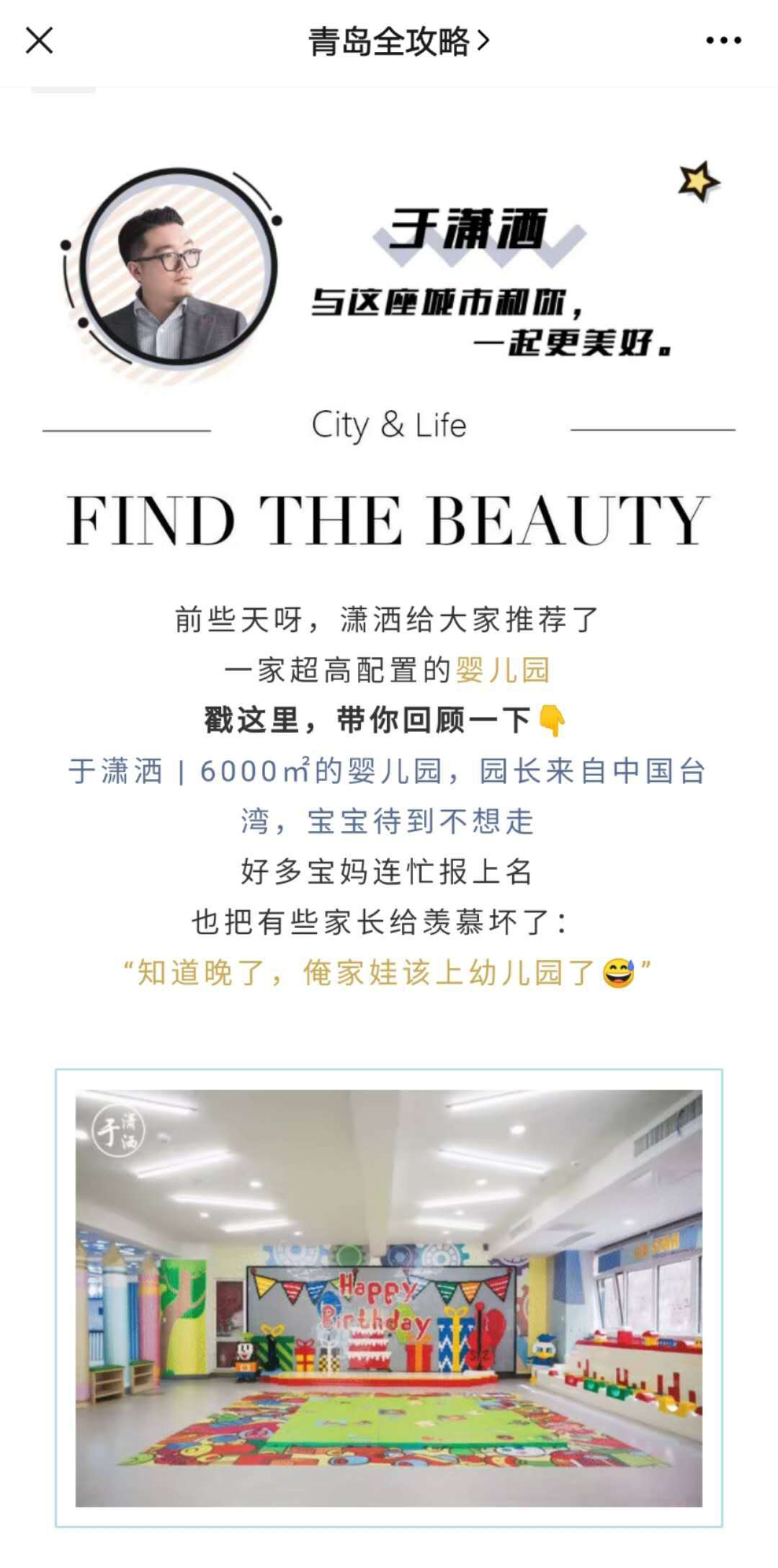 于潇洒在“青岛全攻略”对恒星婴儿园和幼儿园进行过考察和报道
