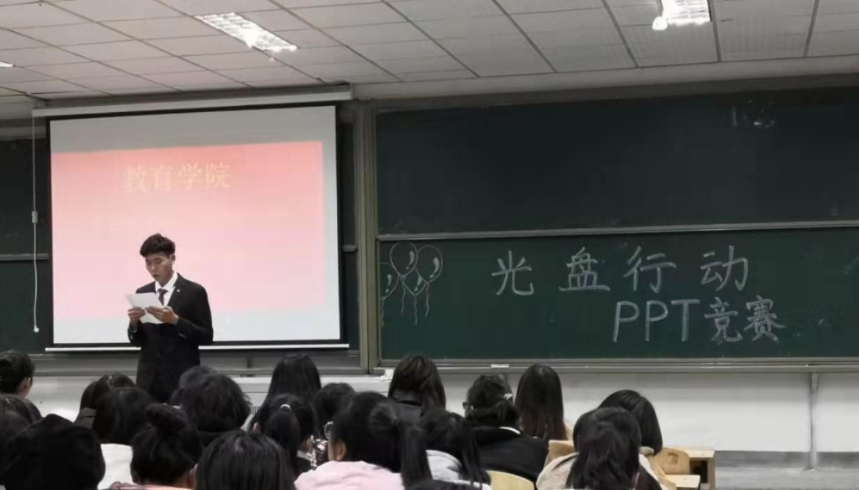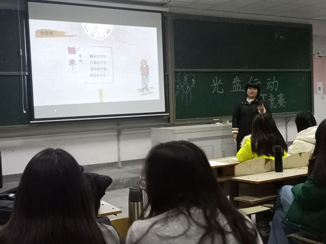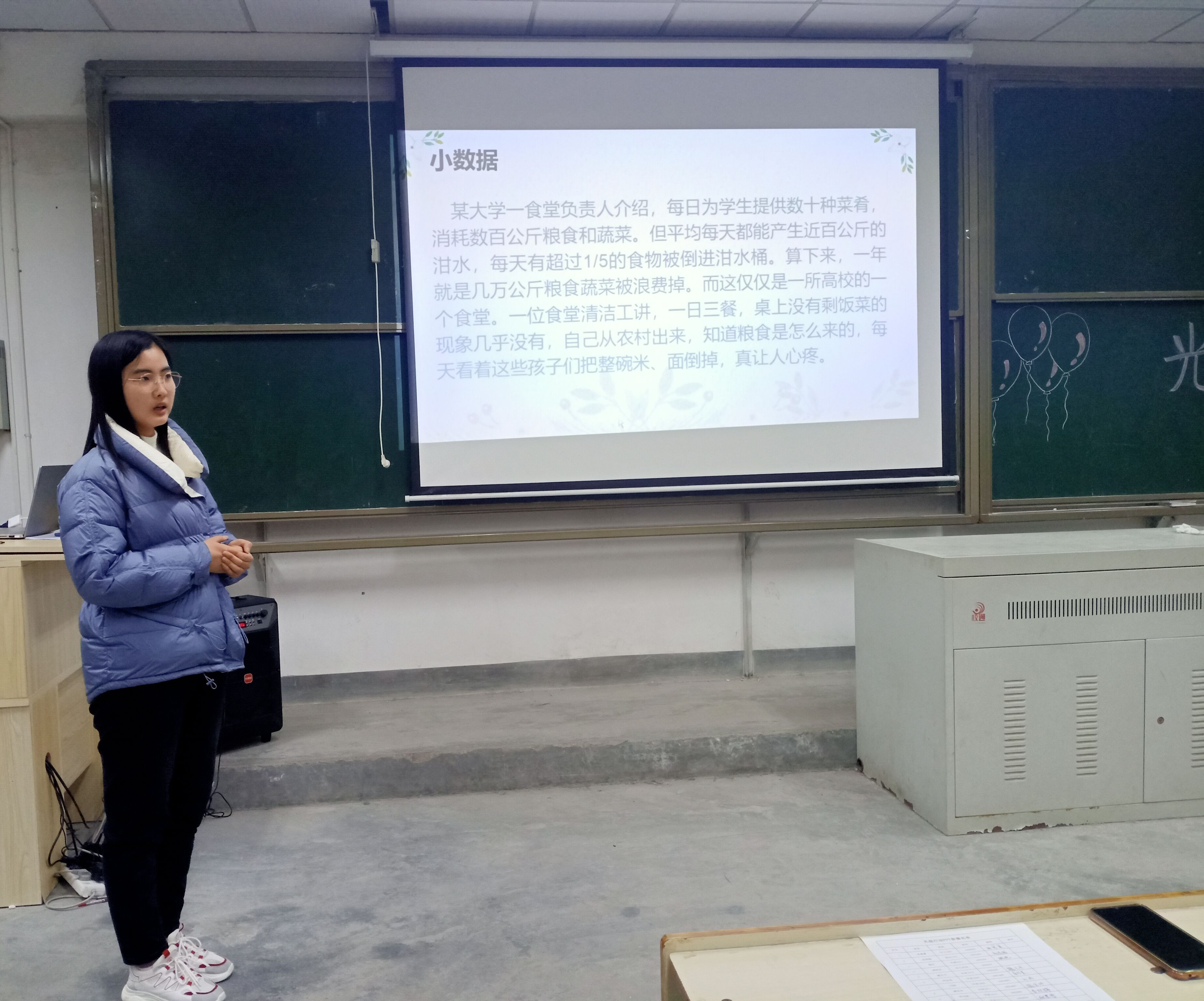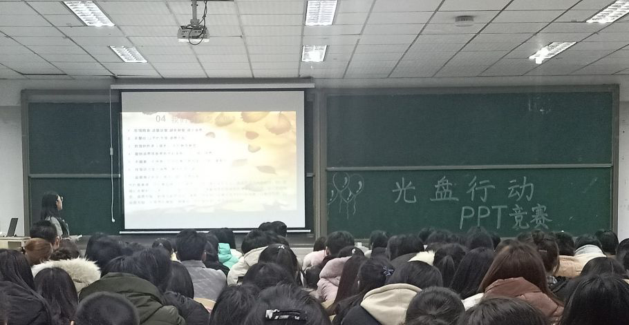 《朱子家训》中有这样一句话:一粥一饭,当思来之不易,半丝半缕,恒念物力维艰。为发扬节约的优良品质,我院特地在11月26日晚上七点在A3-102举行了“光盘行动”PPT竞选活动,共有11个来自不同班级的参赛选手。