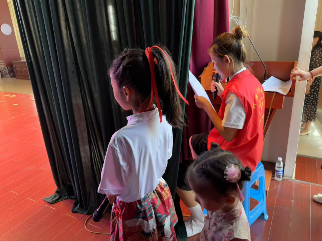 活动尾期,实践队在村里的礼堂张罗了场“论语里的乡土情”文艺汇演。这礼堂是老式的,红漆木门磨得发亮,进门就是几排刷着蓝漆的长椅,最前头搭着个半人高的舞台傍晚的礼堂里。吊扇慢悠悠转着,长椅上早坐满了人。第一个上台的是二年级的小初,小初讲“孔子借伞”的故事时,特意加了自己的理解:“孔子跟子夏借伞,子夏说没有,孔子不生气,因为他知道子夏节省——就像王奶奶总把好东西留给孙子,咱们得懂别人的难处,这就是‘己所不欲,勿施于人’吧?”台下的王奶奶直点头,往台上扔了颗糖:“这娃讲得比说书先生还好!”汇演过程中,队员们在台边看着,有人帮紧张得忘词的小朋友递绘本,有人悄悄给声音小的孩子举话筒。散场时,张大爷拉着队员们的手说:“以前听先生讲《论语》,总觉得远。今儿听娃们一讲,才知全是身边的事——给老人端碗水是‘孝’,借东西及时还是‘信’,这不就是书里的理嘛!”
