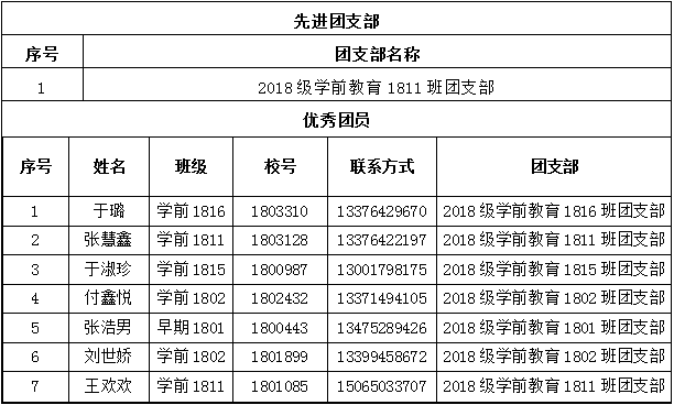 其中幼师学院多名学生评选为优秀团员、先进团支部成员、最美团支书如:学前1816班于璐、学前1811班张慧鑫、学前1815班于淑珍等同学,他们作为青年学生,发扬五四爱国主义精神,促进各团支部间积极竞争,同时关注同学,团结同学,使同学们端正政治方向,树立正确的世界观、人生观和价值观。为团支部发展,学院建设发挥了重要作用,是全体同学学习的榜样。