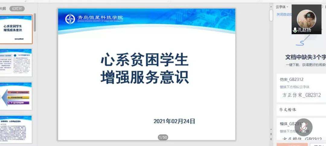 孔赵扬老师为大家带来奖助勤贷政策及工作方案分享,给大家介绍指导工作思想及目标,让大家对相关内容有一定的了解。