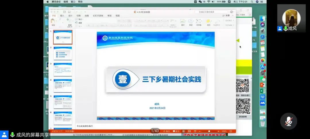 成风老师为大家讲解寒假社会实践与暑期三下乡工作要求,告诉大家社会实践开展的流程。希望大家通过实践活动可以提高综合素质,开拓视野,锻炼能力。
