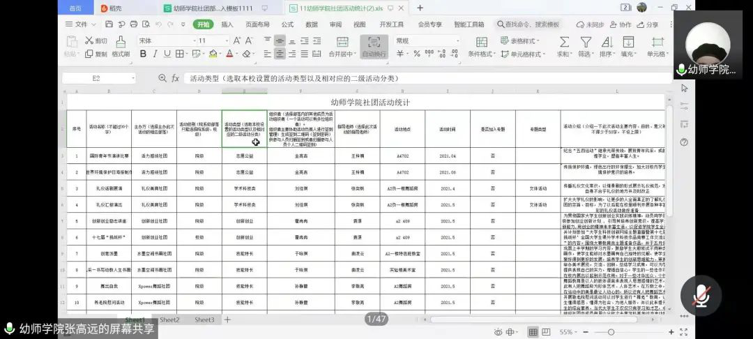 张高远老师为大家带来《2021年上半年院级学生社团活动计划介绍》,向大家展示社团的分类、级别、活动的发布等内容,从而让大家在社团中找寻自己的兴趣。