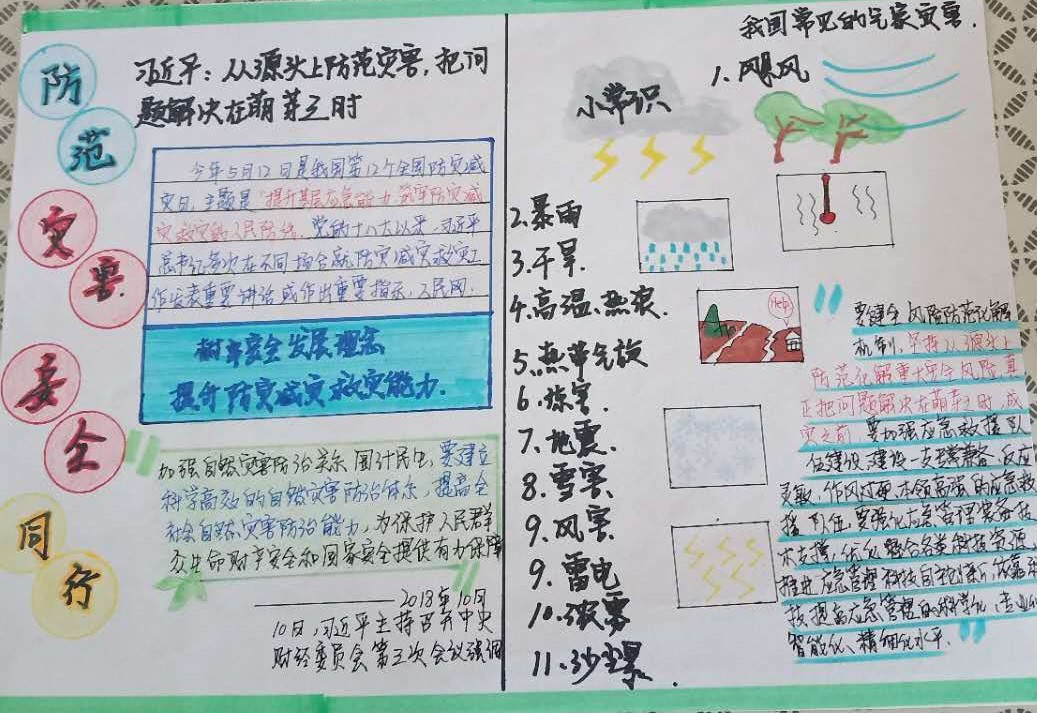 因此我院决定开展以“防范减灾,安全同行”为主题的线上教育主题手抄报评比活动。