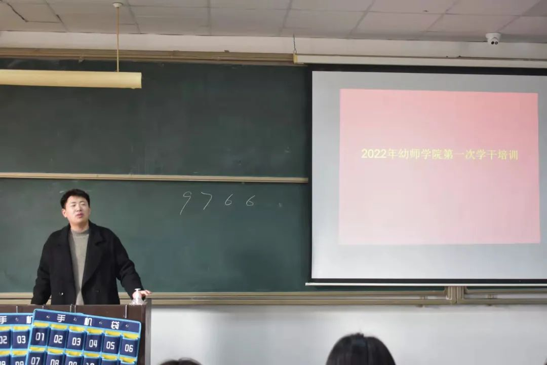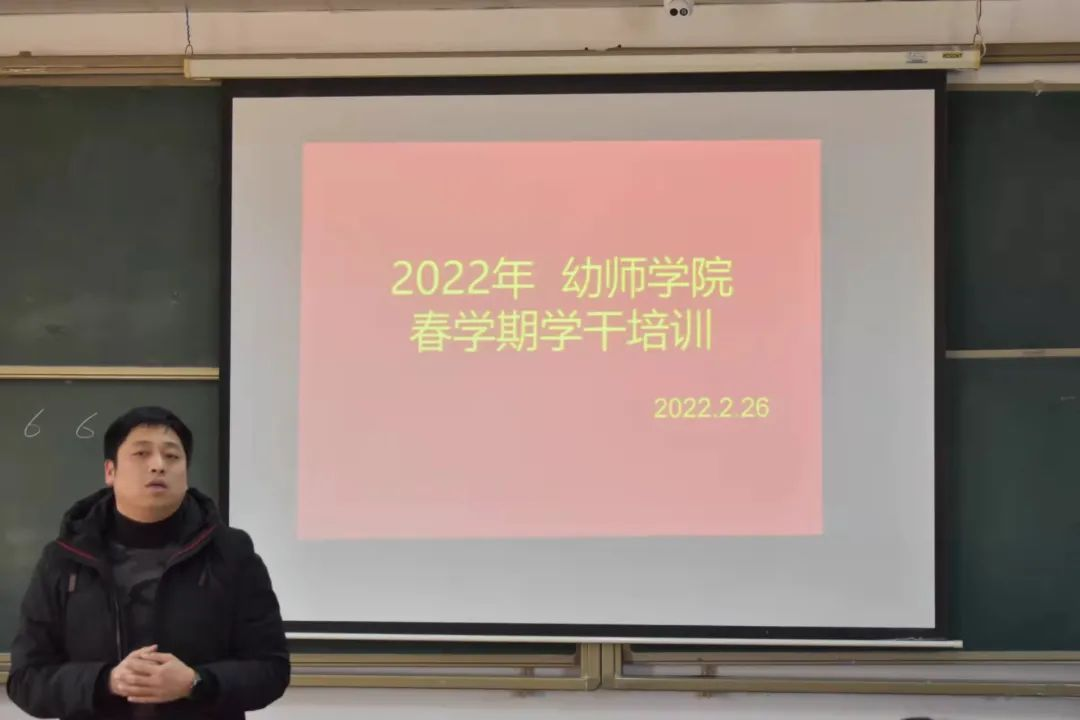 为了提高政治思想素质,加强学干的团结协作能力,提高学干们的学习能力。青岛恒星科技学院幼师学院于2022年2月26日在A4-702举行幼师学院新学期学干培训。本次培训由幼师学院副院长张良、王昱涵老师及全体学生会成员参加,幼师学院主席赵玉圣主持。
