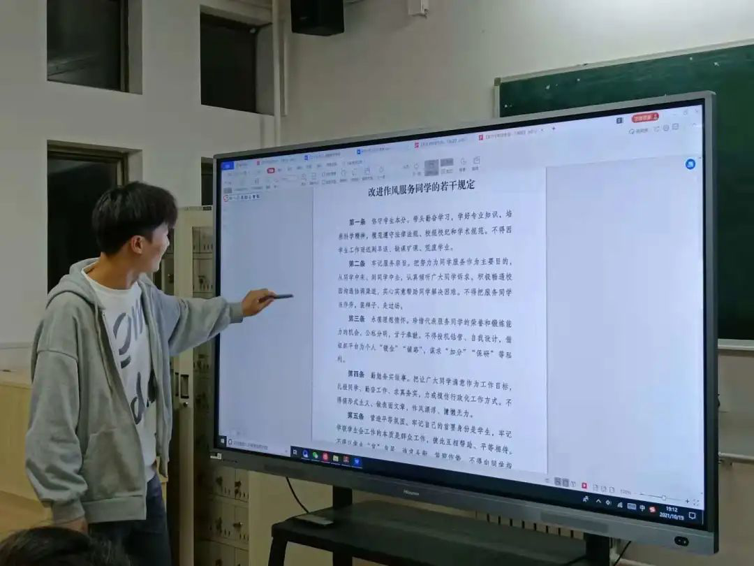 学习新思想,争做新青年。通过《关于学联学生会工作人员改进作风服务同学的若干规定》让大家更加注重自己的举止言行与行为作风,杜绝不良风气和官僚主义等。作为学生干部,要提高政治思想水平,加强自身的修养,崇尚科学努力学习,要有较强的责任心和乐于奉献的精神。