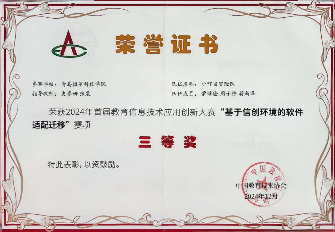 在当今时代,教育技术呈现出蓬勃发展之势,其应用领域不断拓展,广泛深入至各类领域与行业之中,于占据着极为社会整体架构里关键的地位,发挥着不可替代的重要作用。我校始终高擎“文明、博学、实践、创新”的校训精神,积极引导广大学子在学术与实践的道路上砥砺奋进。首届教育信息技术大赛上,恒星学子凭借卓越的才华和不懈的努力,荣获全国三等奖,为我校增添光彩。