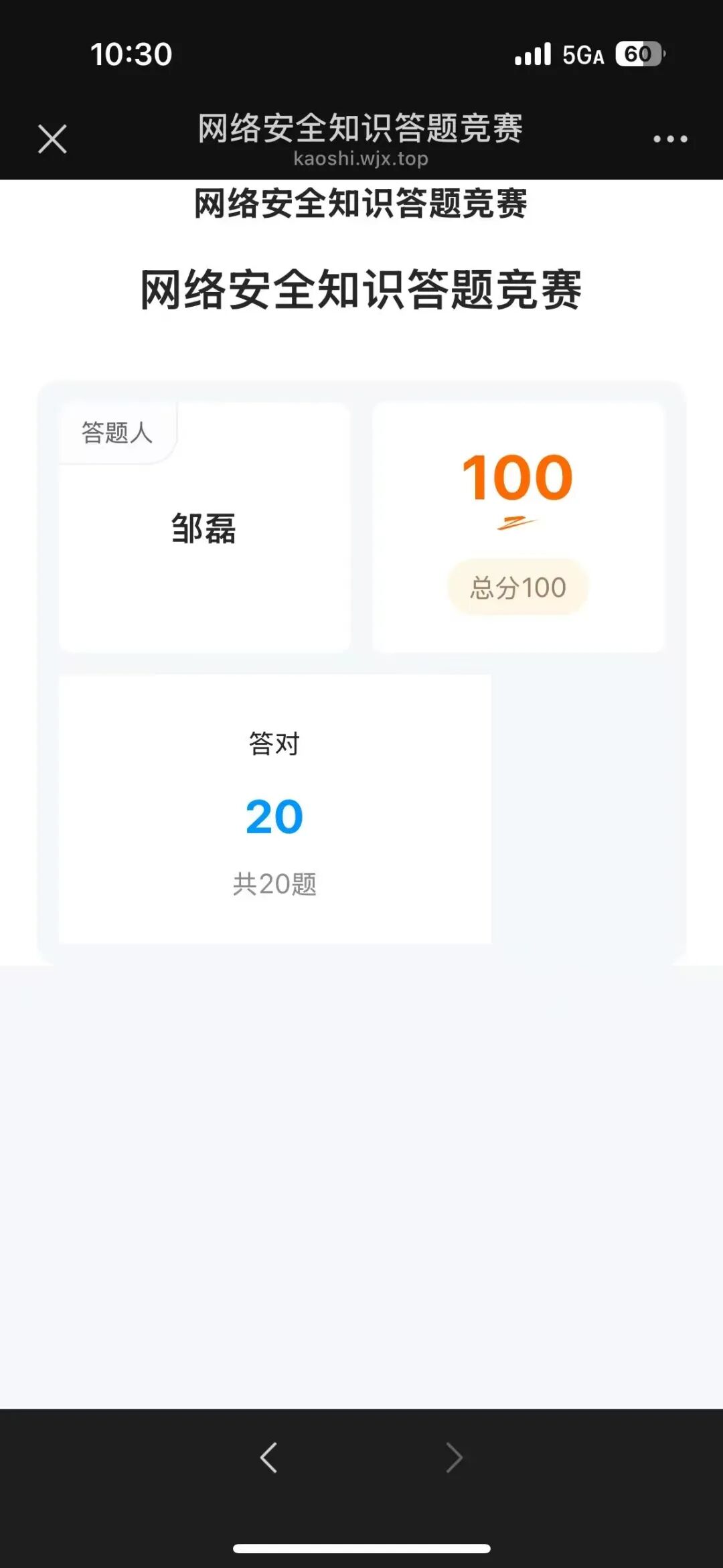 为提升师生网络安全防护能力,学院广泛动员参与全校网络安全知识答题竞赛。师生们通过微信扫描活动二维码,在答题过程中深入学习网络诈骗防范、个人信息保护、数据安全管理等知识。大家在答题中比学赶超,不仅巩固了网络安全常识,更增强了风险防范意识,形成“人人学安全、懂安全、守安全”的良好氛围。
