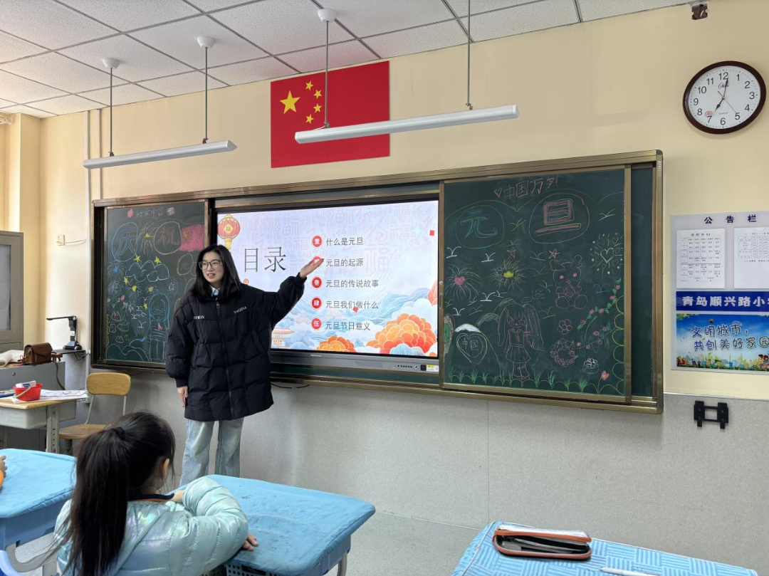 活动现场,学社的学生们向同学们讲述着元旦的由来与各地的习俗传统,从古代的祭祀演变到如今阖家团圆、展望未来的欢庆节日,孩子们听得津津有味,眼中更是闪烁着好奇与求知的光芒。