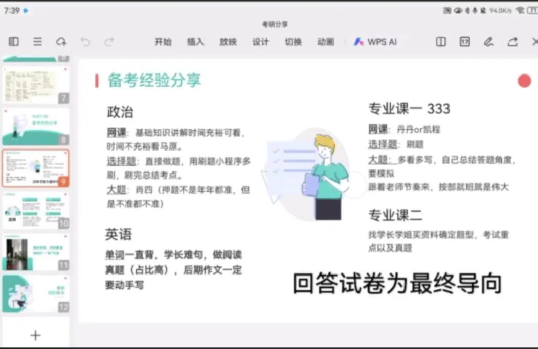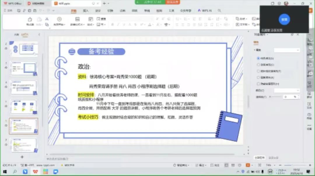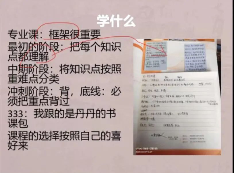 最后,金圆圆同学分享了考前冲刺阶段的复习重点、考场应对技巧等内容。