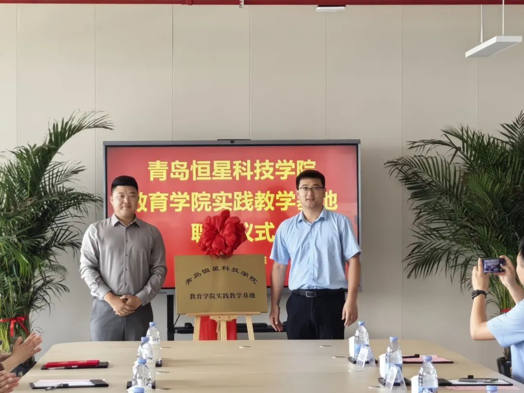 在全场见证下,教育学院党总支书记王清与新河草编技艺非遗传承人李秋菊完成实践签约,并为李秋菊老师颁发聘书,为双方在非遗文化领域的深度合作拉开序幕。张新宇书记代表平度团市委向我校颁发“山东省非遗工坊”牌匾,教育学院执行院长王梓楠为合作方授“实践教学基地”牌匾。两块牌匾的授予,标志着校地在实践教学与非遗文化传承方面迈出了实质性的一步。