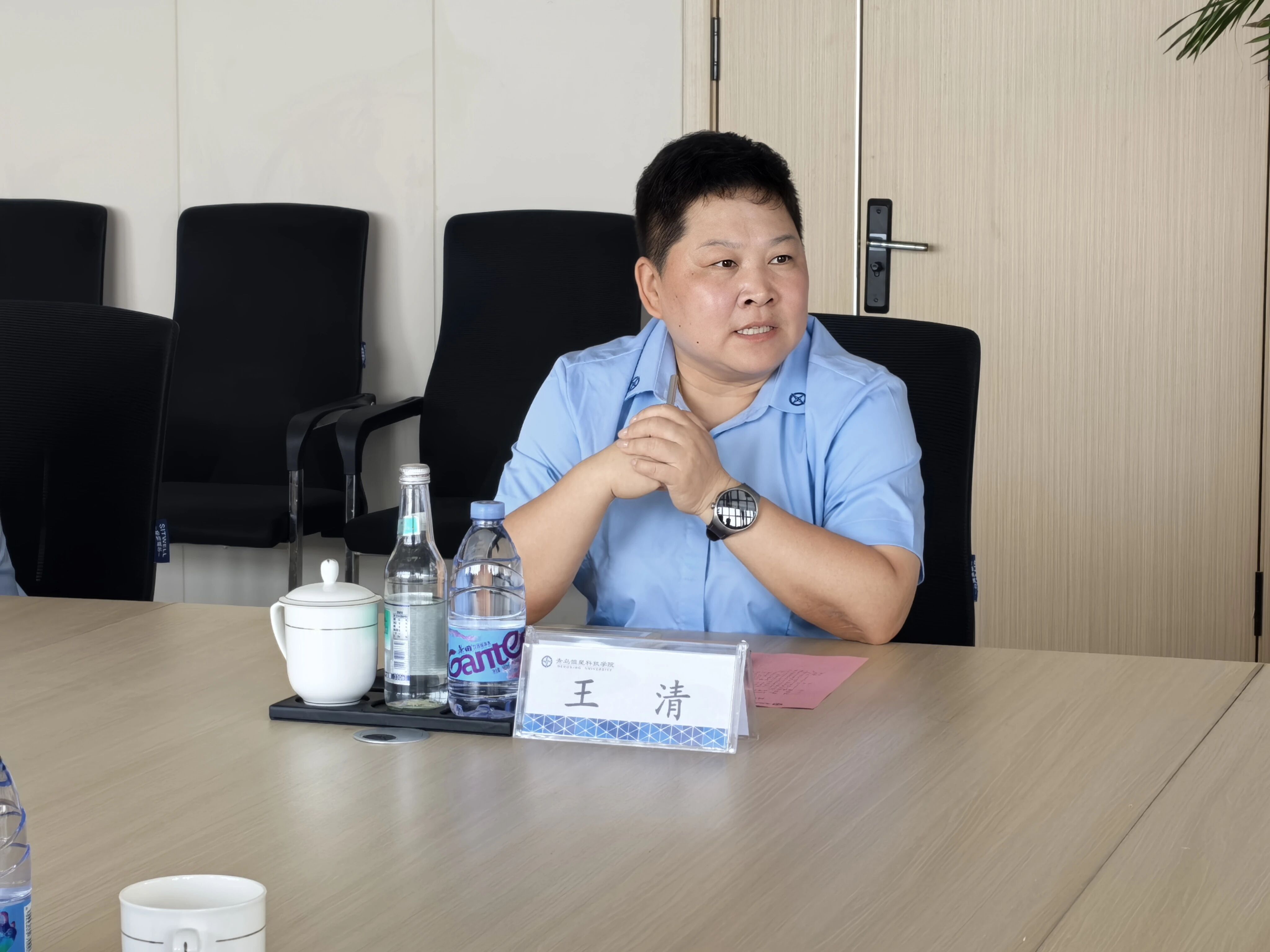 授牌仪式后,双方就校地合作、非遗文化进校园、非遗文化传承、非遗文化助力乡村振兴、非遗文化草编、活力夜校项目与学社协同育人等共建问题展开热烈交流。张新宇书记对青岛恒星科技学院在非遗文化传承与育人结合方面的努力表示肯定,希望以此次交流为契机,推动双方在更多领域实现资源共享、优势互补。新河草编技艺非遗传承人李秋菊也分享了草编技艺的传承故事,表达了与校方合作传承非遗文化的期待。李云霞书记及教育学院党总书记王清表示,学校将积极落实合作协议,充分发挥高校在人才、智力和资源方面的优势,全力支持非遗工坊建设,精心组织活力夜校项目,推动非遗文化深度融入教育教学和校园文化。