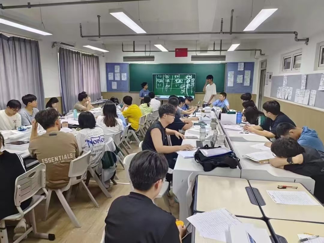 在这期间陪伴他们的是教育学院李娜学社、珊珊学社的学生曹心如、陈文哲、历彦琦,以及导师助理迟建超老师、张玉老师、韩青老师。整个团队在集训期间,每天16:20-22:20坚持陪伴在学生身边,自学生宣誓始,至结营合影终,每个夜晚始终陪伴着学生们,指导他们正确使用AI学习系统,帮助他们利用学习系统强化自身的学科学习。