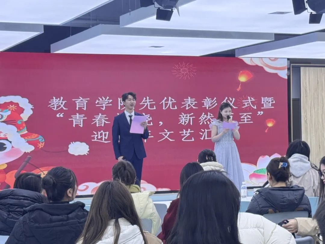 2024年12月26 日,教育学院在儿童未来成长中心盛大举行先优表彰暨“青春拂晓,新然而至”迎新年文艺汇演。出席本次活动的领导老师有教育学院党总支书记、教学副院长张雨龙娃,教育学院党总支副书记王柏杨,教育学院督导主任吴丽敏,办公室主任高慧慧,教育学院教师教育学院行业院长李云萍以及全体辅导员。