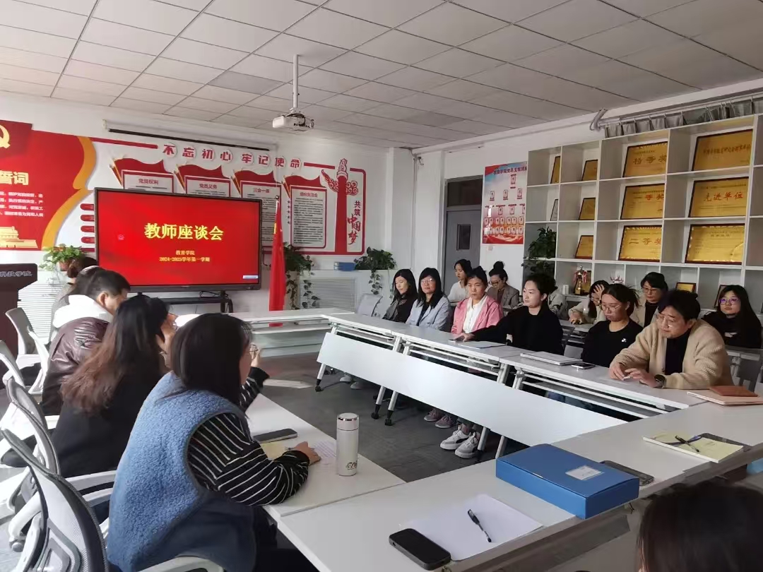 “教师是立教之本、兴教之源,也是人才培养的关键力量。”10月31日上午9:00,教育学院在A2党建会议室召开教师座谈会。学院执行院长王清、党总支书记兼教学院长张雨龙娃、副书记王柏杨、督导主任吴丽敏、办公室主任高慧慧、各教研室负责人,部分行业学院教师和各年级学生代表参加座谈会,会议由督导主任吴丽敏主持。