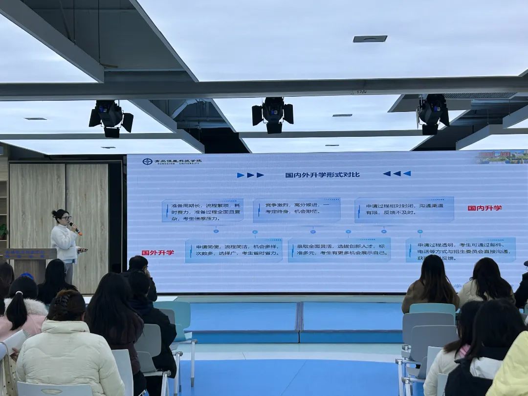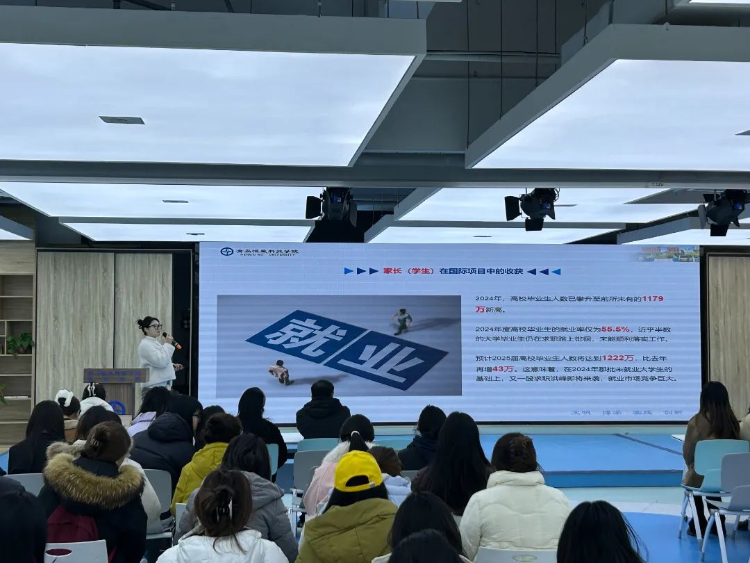 为了深度打破学生在国际升学之路上面临的信息壁垒,拓宽学历提升渠道,青岛恒星科技学院教育学院于2025年3月6日在儿童成长中心举行了国际升学讲座。