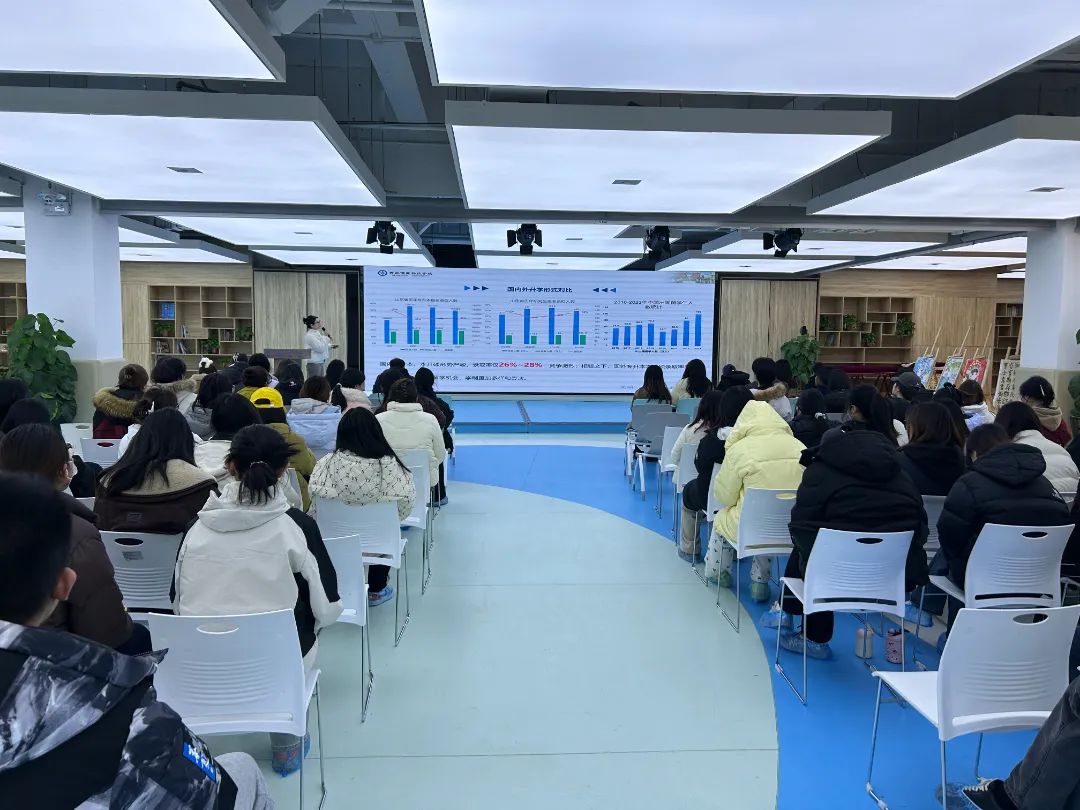 活动伊始,国际教育学院孔阳老师从当下全球化的教育大趋势切入,用详实的数据和生动的案例,分析了国内外升学与就业的形势。数据显示国内就业竞争激烈,学历提升对求职极为关键,而海外留学在录取率、学制、就业薪资等方面优势明显。老师还为教育学院同学们推荐了几所适合教育专业升学的国外大学,更加精准的为同学们进行升学指导。