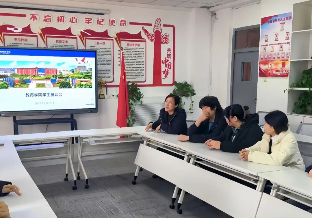 为进一步贯彻落实服务同学的根本宗旨,推动解决学生权益保障问题,健全学生权益维护体系,2025年2月25日下午,教育学院于A2教学楼党建活动室召开了权益座谈会,辅导员孙玉宁老师与学院学生代表深入交流学生权益问题,听取诉求与建议,讨论解决方案,推动学生权益工作进一步落实。
