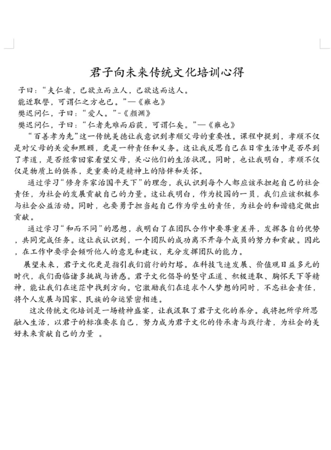 五天的培训与分享,将优秀传统文化结合新时代的特征进行了有效的创新和转化,不仅陶冶了情操,更使中华传统文化得到良好的传承,为新时代君子人格教育提供丰富滋养。希望大家能从本次培训学习中汲取智慧与力量,身体力行传承经典之浩荡,树立民族之脊梁。