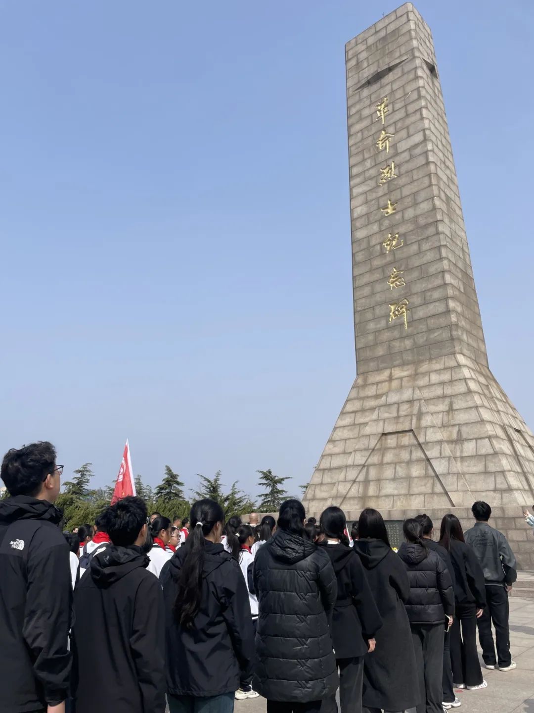 上午9时,祭扫活动在庄严肃穆的氛围中拉开帷幕。同学们整齐列队,在革命烈士纪念碑前向革命先烈默哀,以表达对他们的深切悼念和崇高敬意。默哀结束后,学生代表向烈士纪念碑敬献了鲜花,寄托着我们对先烈的无尽哀思和崇高敬意。