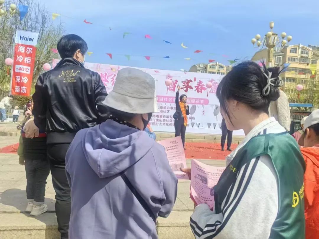 活动当天,志愿者们早早来到现场,有序开展各项准备工作。他们身着统一服装,热情地引导居民入场,帮助老人和孩子找到合适的观景区。在樱花文化展示区,志愿者化身为讲解员,为居民们讲解樱花的品种、历史和文化内涵。在趣味互动环节,志愿者们组织亲子游戏,带动现场气氛,孩子们在游戏中收获了快乐,家长们也感受到了浓浓的亲子温情。此外,志愿者还负责反诈宣传,帮助中老年人提高反诈意识。
