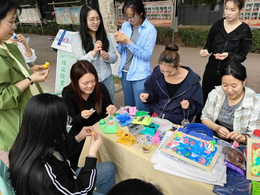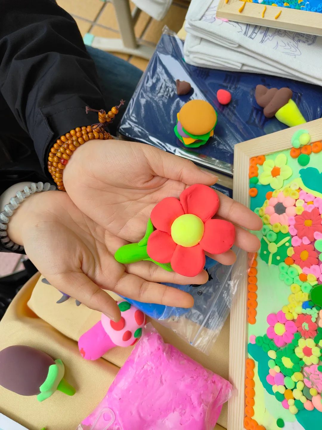 与此同时,“以美润心,指尖绘梦” 活动也在如火如荼地开展,为同学们带来一场沉浸式的艺术疗愈体验。创作过程中,同学们的想象力如潮水般奔涌而出,创意火花不断迸发。有的同学以自然之美为灵感源泉,用五彩斑斓的粘土巧妙塑造出春日繁花似锦、夏日绿树成荫、秋日金叶纷飞、冬日银装素裹的四季景象,将大自然的神奇与美妙定格在指尖;有的同学围绕心灵治愈主题展开创作,把温暖的微笑、灿烂的阳光、轻柔的云朵等元素巧妙融入作品,传递出满满的正能量与温暖关怀;还有的同学以校园记忆为蓝本,用粘土重现教室中专注学习的身影、操场上挥洒汗水的青春活力、图书馆里静谧美好的阅读时光,将美好的校园生活凝固成永恒的艺术瞬间。