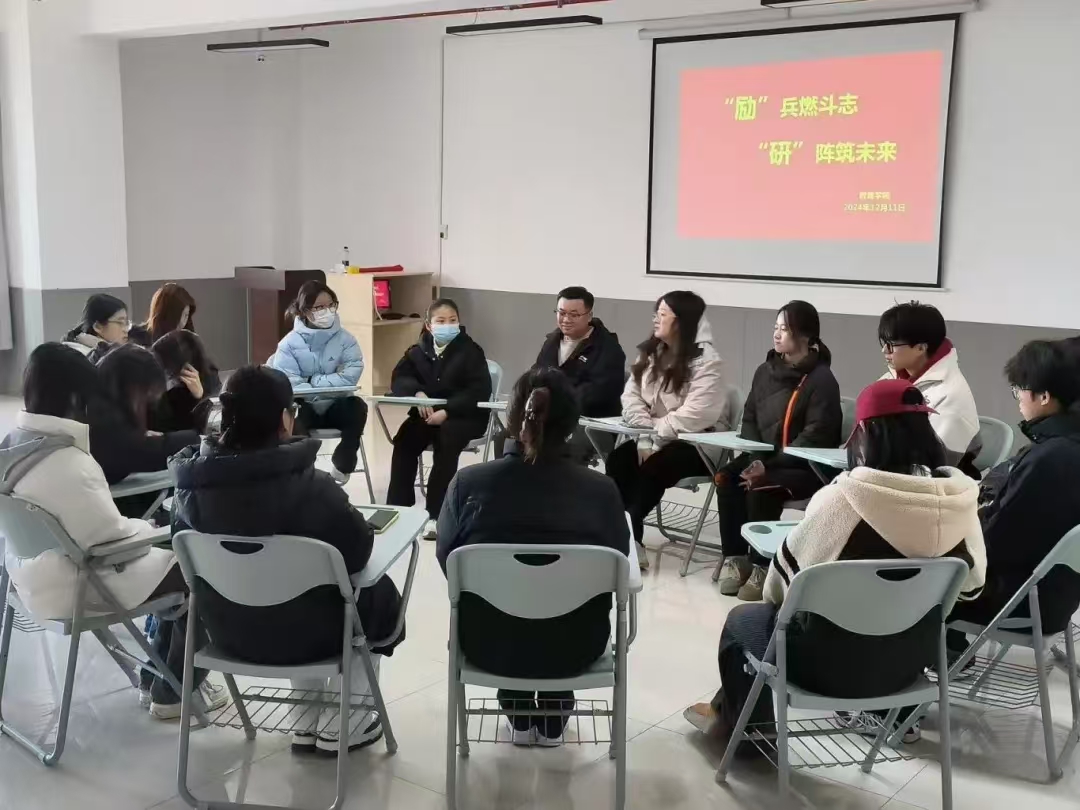2024年12月11日上午,教育学院党总支副书记王柏杨和辅导员张振坤来到青岛恒星科技学院莱西校区奖助学金发卡仪式暨座谈会的现场,给考研学子送去最贴心的助力与最温暖的关怀,给他们支持与鼓励,为同学们点亮了希望之光,指引着未来的方向。