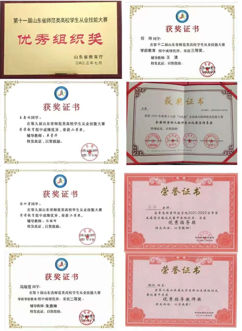 充分发挥党员教师先锋模范作用,积极开展大学生职业生源规划和就业引导的实践探索。支部教师担任学社导师从学业指导、技能提升、大赛科研、职业规划全方位开展项目化人才培养。近两年毕业生就业率达90%以上,专业对口率达67%,共有38位毕业生考取硕士研究生。近三年共获得各类大赛奖励百余项,支部教师指导山东省师范类专业从业技能大赛获奖8项,指导学生发表论文23篇,专利软著14项。