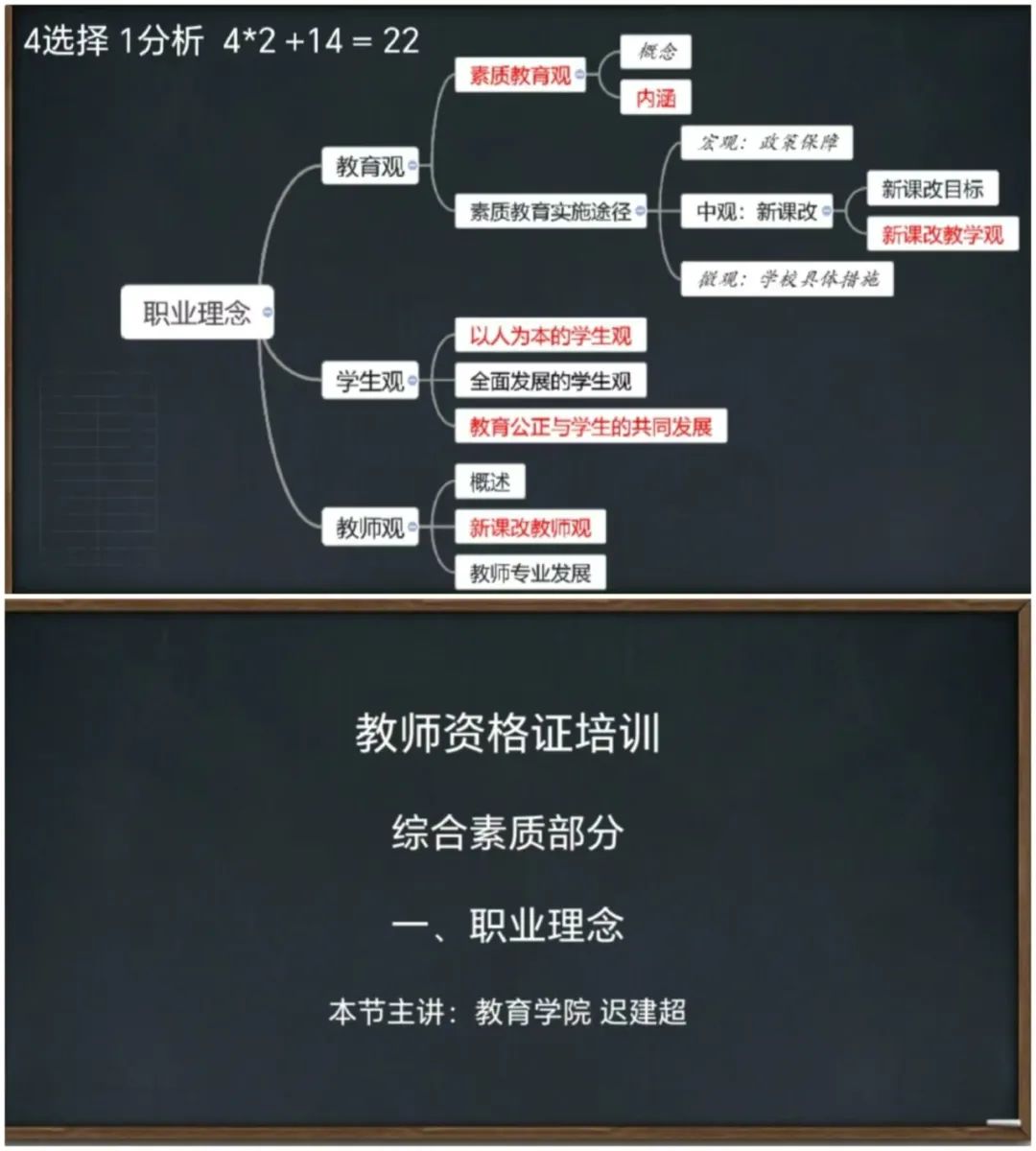 今天课程由教育学院迟建超老师进行课程讲授,主讲内容为综合素质中的职业理念,本部分知识点是教师资格证考试中综合素质科目中的重点内容,迟老师从教育观,学生观,教师观三个部分展开详细讲授。