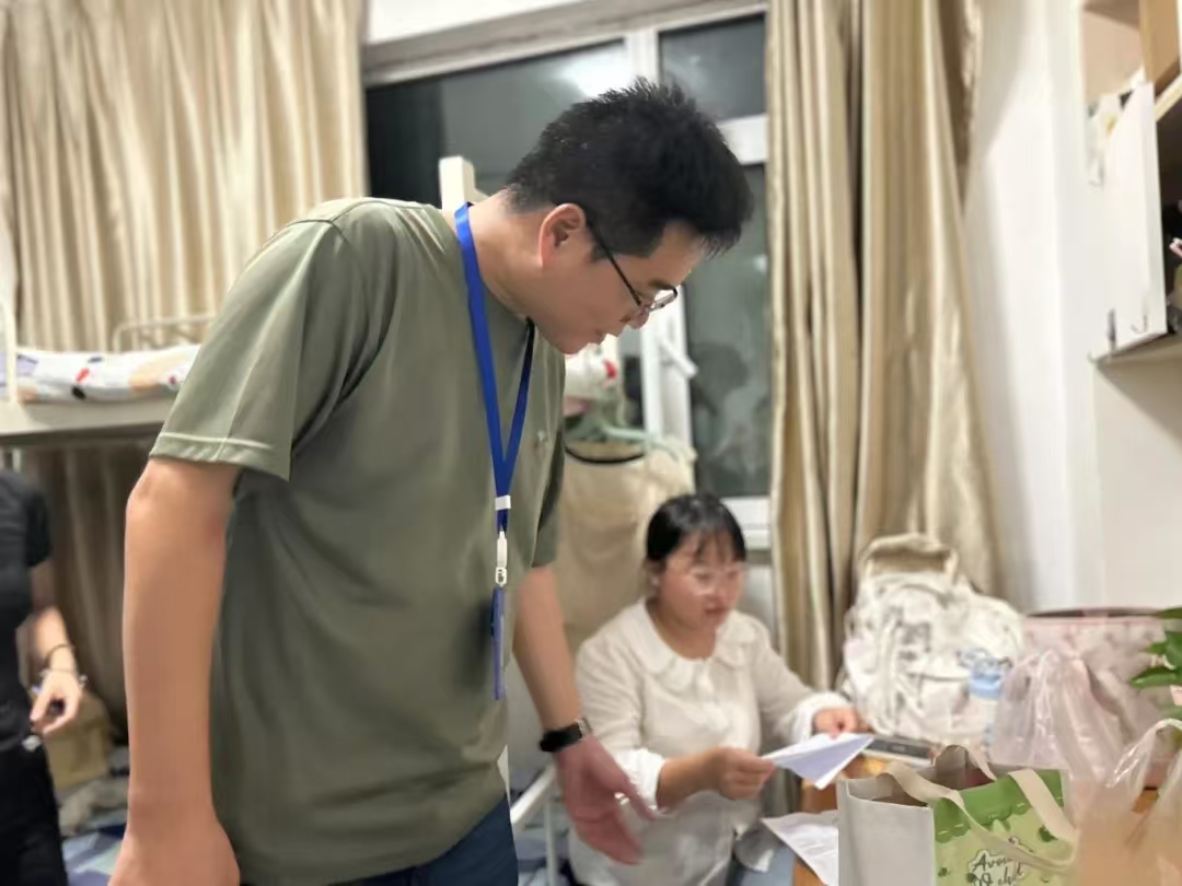 班会结束后,教育学院新生辅导员们不辞辛劳地深入新生宿舍进行走访。他们与新生们面对面交流,倾听他们的心声与需求,传递着学院对每一位新同学的热烈欢迎和深切关怀。同时辅导员们也叮嘱同学们要遵守学校各项规章制度,注意宿舍用电安全、规律作息、积极锻炼,养成良好的学习、卫生和文明习惯。