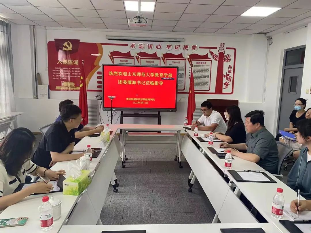 为切实提高大学生创新精神、创业意识和创新创业能力,进一步提升我院参加各类技能大赛的项目质量,7月13日下午,教育学院特别邀请山东师范大学教育学部团委书记薄海进校开展技能大赛系列专题培训会,培训会通过线上线下相结合的形式,以培训指导、现场答疑等方式进行。教务处创新创业科科长迟凯、教育学院院务会成员、项目指导老师、参赛学生参加此次培训会,会议由科研院长王梓楠主持。