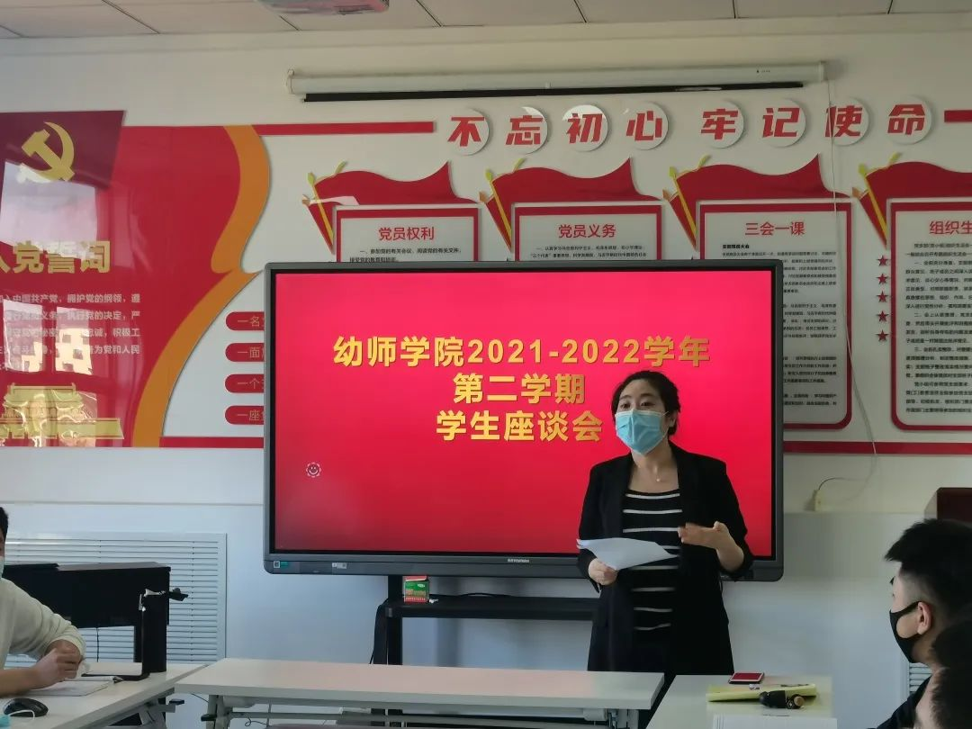 为关心与了解学生的思想动态和学习生活状况,收集学生对学校教育、管理、服务等方面的意见和建议。青岛恒星科技学院教育学院于2022年5月5日下午17时在A2-210党建活动室召开学生座谈会。参加本次座谈会的有:教育学院院长王冰、教育学院副院长单菁华、教育学院副院长张良、教育学院教学助理马慧、教育学院行业主管苏丹、刘丁铭老师、冯文馨老师及各年级学生信息员。会议由曲凌云老师主持。
