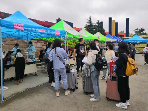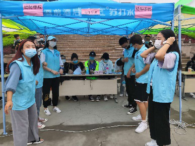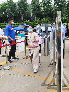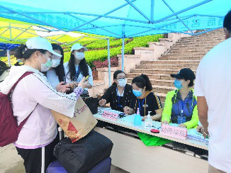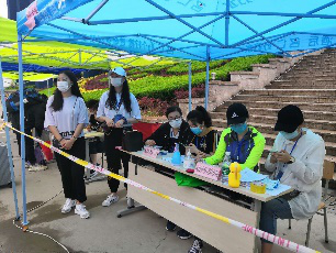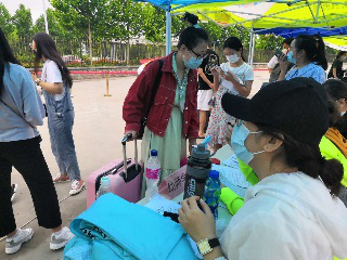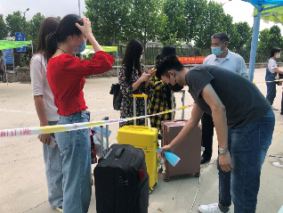 省外同学领取试管,进行核酸检测,省内同学查看体温