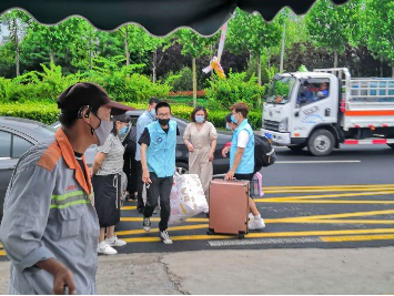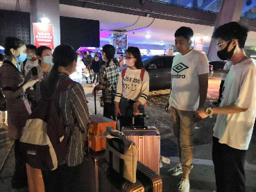 老师们亲自帮同学们拎东西,把他们送上幼师学院专用接待车
