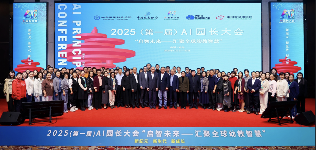 2025 年 11 月 21 日至 23 日,以“启智未来 —— 汇聚全球幼教智慧”为主题的首届 AI 园长大会在我校盛大召开。本次国际学术盛会在中国信息协会统筹指导下,青岛恒星科技学院联合WPC世界园长大会、中国教师研修网等单位共同承办,吸引了来自全国的千余名幼教专家、园长及教育工作者线下参会,中国教师研修网线上直播更是创下万次浏览量的行业纪录,成为推动AI与学前教育深度融合的重要里程碑。